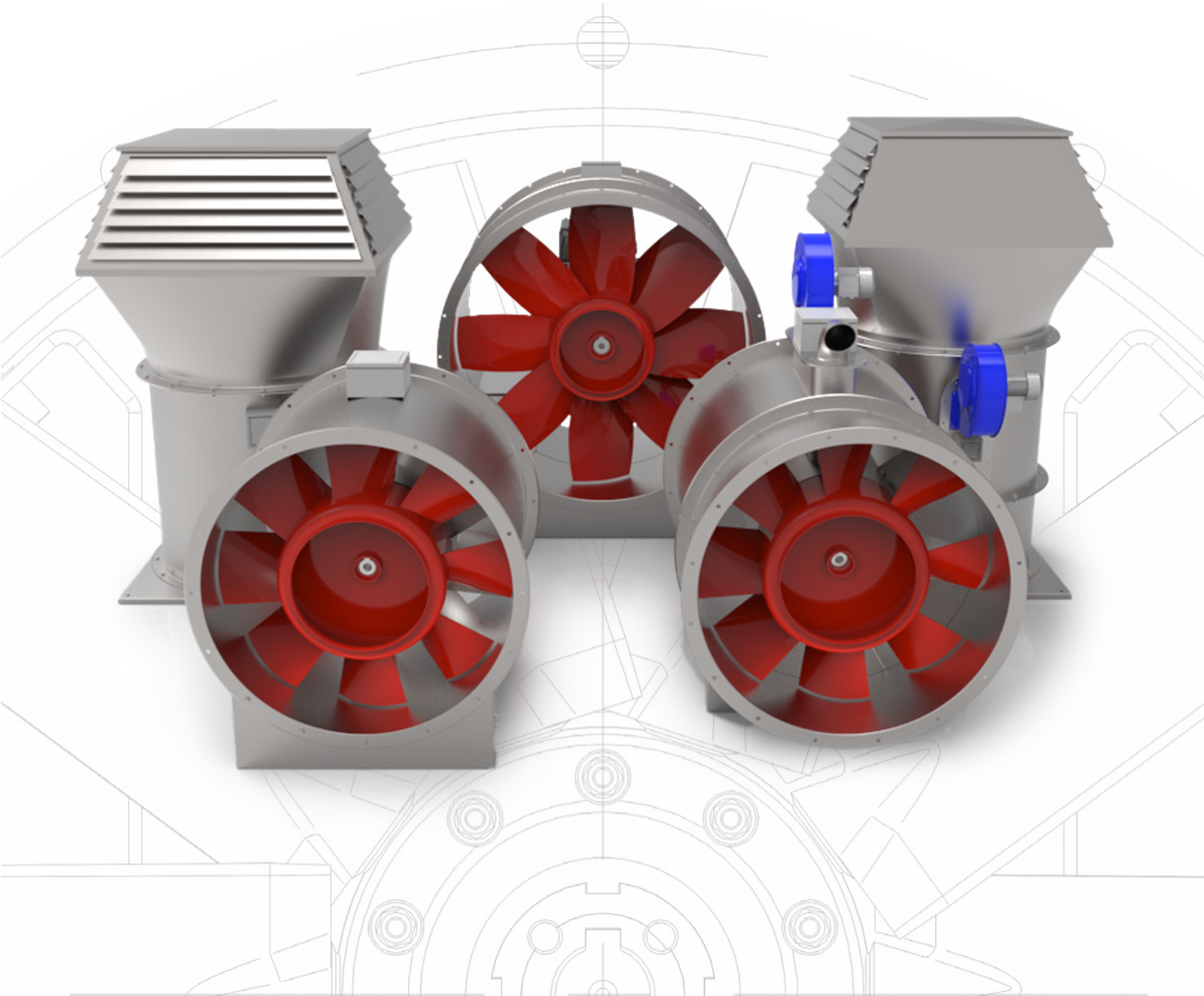 Lüftungskomponenten für Treppenhäuser, welche automatisch für die rauchfreie Zufuhr von Frischluft sorgen und im Brandfall einen Überdruck im Treppenhaus erzeugen.